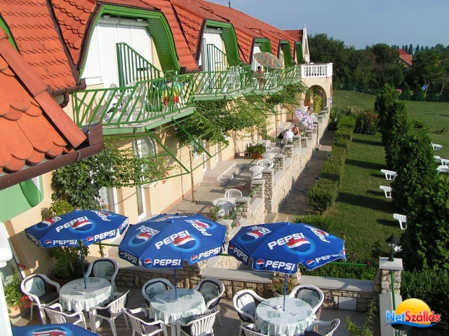 Téliesített panziónk Balatongyörök központjában egy csendes, szép utcában fekszik, gyönyörű kilátással a Balatonra és a kb. 1 km-re fekvő Szent Mihály dombra és az annak tete-jén álló hangulatos kápolnára. A Panziótól 50 m-re van ABC és buszmegálló, a strand 400 m-re található, de egy könnyű séta az árnyas fák alatt ezt az utat is lerövidíti. A Balatont körbefutó kerékpárút 300 m-re található. A család által üzemeltetett Zeppelin étterem csupán 200 m-re található, ahol szállóvendégeink 10% kedvezménnyel étkezhetnek. Az épület háta mögé "rejtett" parkoló biztosítja az autók számára a megnyugtató helyet, az épület előtti tágas, zöld park pedig a pihenni vágyóknak, gyerekeknek, napfürdőzőknek nyújt kellő teret a kikapcsolódáshoz.