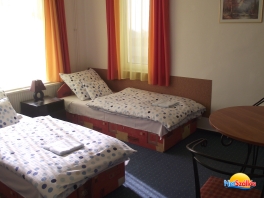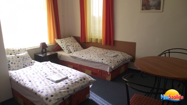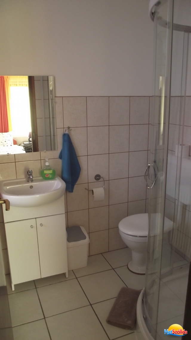 kétágyas szoba: 2 szimpla ágy, +saját fürdővel: (zuhanyzó, mosdó és WC)