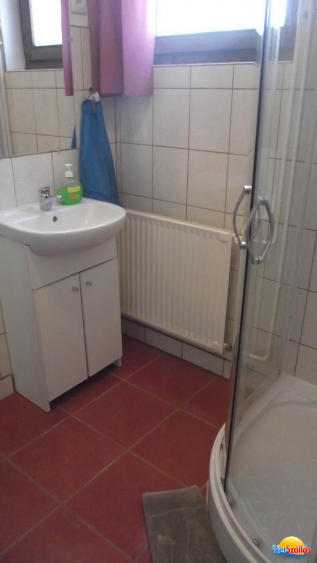 Háromágyas szoba: franciaágy, szimpla ágy, +saját fürdővel: (zuhanyzó, mosdó és WC)