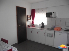felszerelt konyha: hűtő, kávéfőző, vízforraló, mikro, főzőlap, kenyérpirító, szendvics sütő.