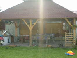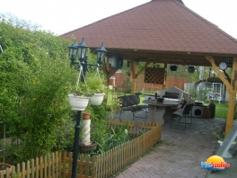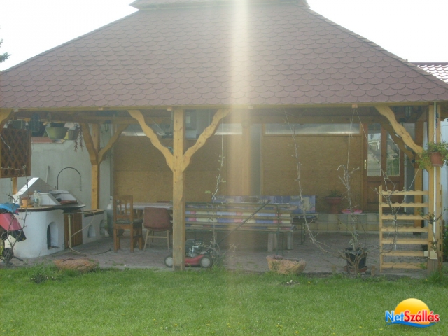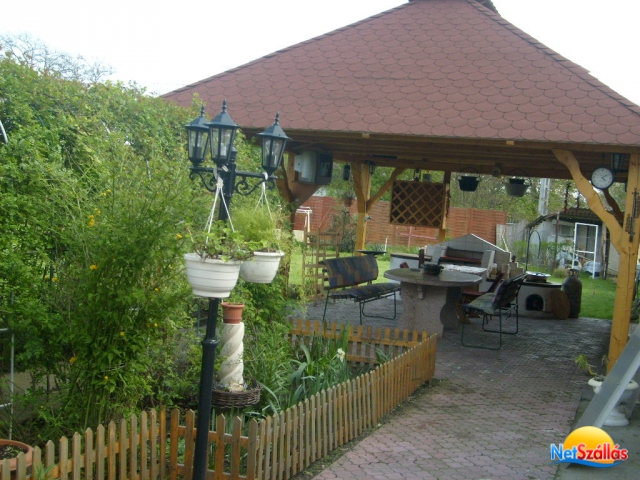 A vendégház egy új, 180m2 alapterületű épület , 1500m2 füvesített kerttel. A kertben 35m2 ? es kerti pavilon található mely alatt bográcsozásra és grillezésre kiválóan alkalmas főzőhely lett kialakítva.
