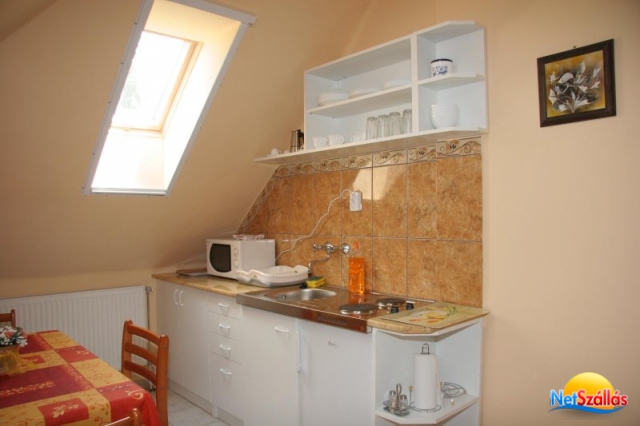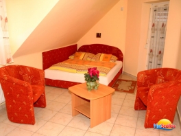 A 2006. július 1-én nyílt -a fürdő bejáratától 200 m távolságra- apartmanházunkban társalgó, 5 db 2 ágyas és 2 db 4 ágyas apartman található. A 2 ágyas apartmanok pótágyazhatók. Valamennyi apartmanhoz jól felszerelt minikonyha, színes TV (kábel TV), fedett terasz tartozik. Az udvarban saját medence, fedett kerti grillsütő, bográcsoló található. Zárt díjmentes parkoló az udvarban.