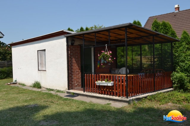 Fiatal pároknak Balatontól (szabadstrand) 900 méterre nagy kertben önálló összkomfortos kisház kiadó egész nyáron.