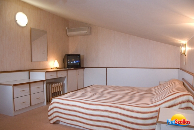 3 appartman és 7 kétszemélyes, franciaágyas szoba található.