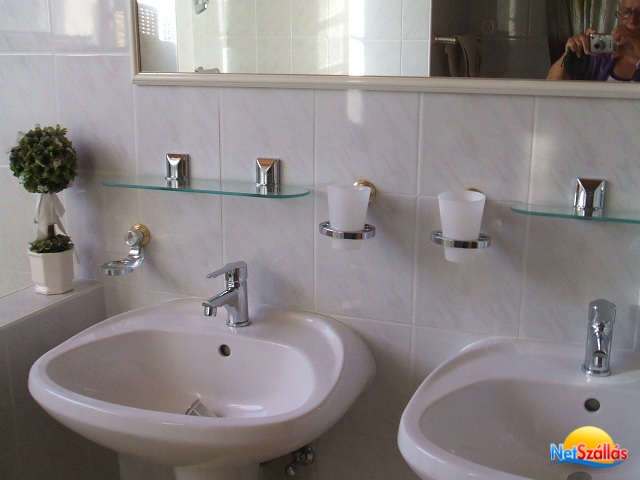 A hatalmas nagy nappali két nappali bútorral és kanapéval, 10 nm2-es fedett terasszal. Az apartmanban két hálószoba található, 2 személyes és 4 személyes. Fürdőszobából is 2 van, az egyik sarokkádas a másik zuhanyzós, s persze konyha minden extrával felszerelve.