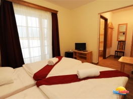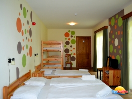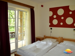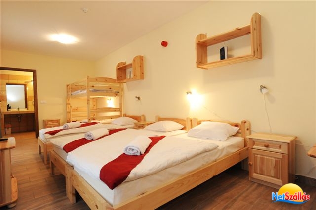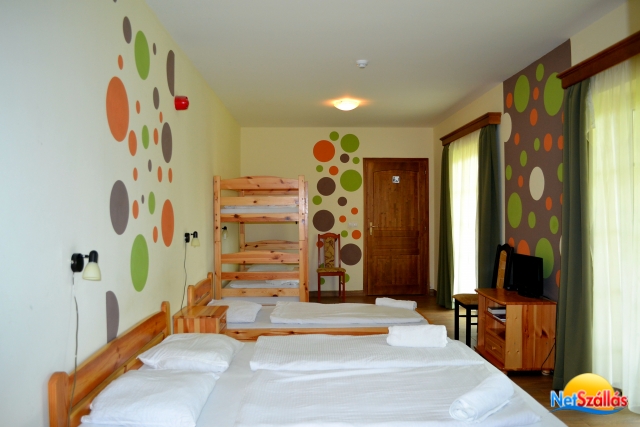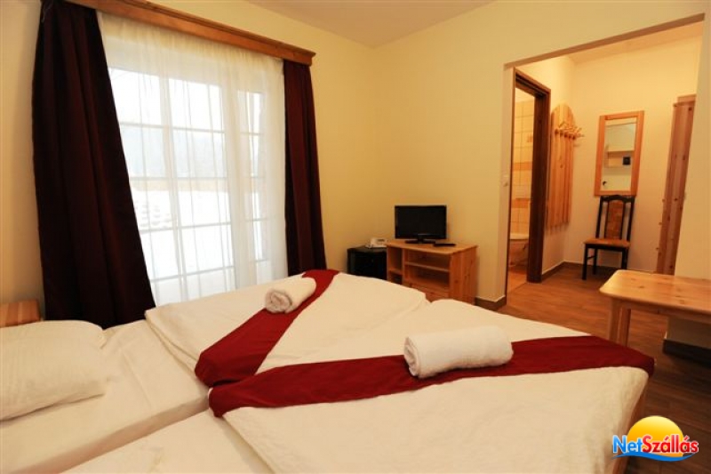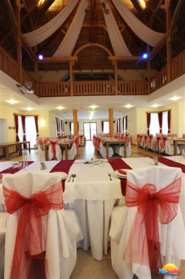 A Hotel az étteremtől és a rendezvényteremtől külön álló építmény, ezzel is biztosítva az itt megszállók nyugodt A panzió az étteremtől és a rendezvényteremtől külön álló építmény, ezzel is biztosítva az itt megszállók nyugodt pihenését.A Hotelban 28 db kétágyas erkélyes szoba, 2 db 4 fős, erkélyes családi apartman (ezek közül 3 db akadálymentesített), valamint a tetőtérben 8 db két hálószobás, teakonyhás családi apartman található. A szintek között lift könnyíti meg a közlekedést. Minden szobához tartozik fürdőszoba, telefon, LCD tv, minibár, WiFi a közösségi helyiségekben és a szobákban érhető el. Zárt parkoló, játszótér, konditerem, 2 db társalgó kényelmes bútorokkal, nagy képernyős LCD televíziókkal ingyenesen áll szállóvendégeink rendelkezésére. A finn- és infraszauna külön díjazás fejében vehető igénybe, illetve a 3 vagy több éjszakát eltöltő vendégeknek díjmentes. A recepció zárása után éjszakai ügyeletet biztosítunk