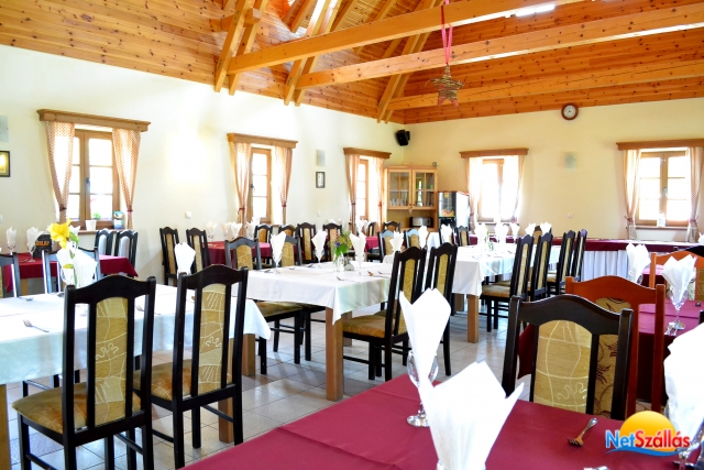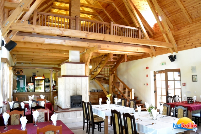 Éttermünk 66 fő befogadására alkalmas. Hangulata, bútorzata családias, hagyományőrző, de egyben a mai kornak megfelelő stílusú. Tavasszal és nyáron a terasz is üzemel kinti felszolgálással. Étlapunkon megtalálhatóak a hagyományos magyar ételek, a környék és a Felvidék tájjellegű fogásaival színesítve. Külön figyelmet fordítunk vegetáriánus és különböző ételallergiában szenvedő vendégeinkre is. Jó időben a kinti grillen, szabad tűzön készült ételeinkkel kedveskedünk a fáradt vándoroknak, télen pedig a benti látványkemence mellett nem csak melegedhetnek, de ki is próbálhatják a benne készült gasztronómiai csodákat.