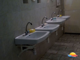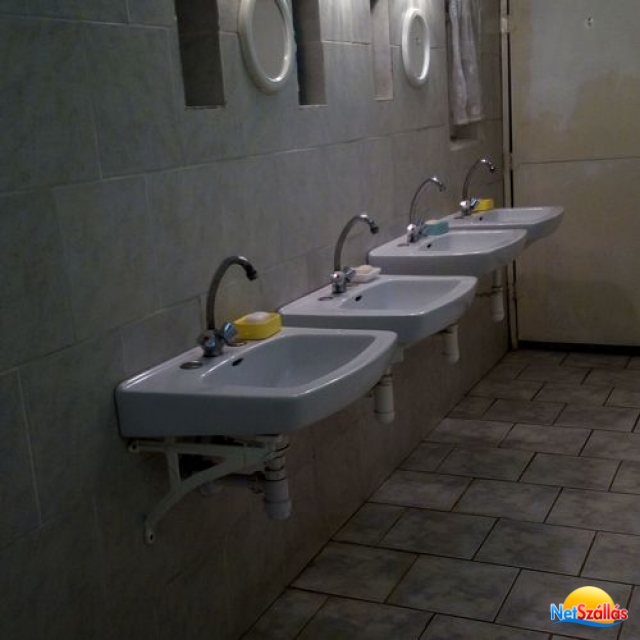 -Közös fürdőépület és WC a faházas vendégeknek, férfi és nöi elkülönített bejárattal.