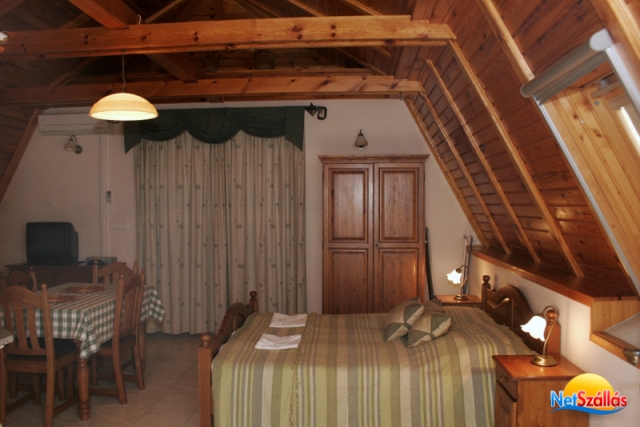 A légkondicionált lakosztályokban hálószoba, nappali, teljesen felszerelt konyha ( kerámia lapos tűzhely, mikro,fagyasztó-hűtő,kávé-tea főző, edények,kés villa,olló stb.( és minden, ami egy konyhába kell), fürdőszoba WC-vel/külön WC-vel és terasz vagy erkély található kerti bútorokkal.