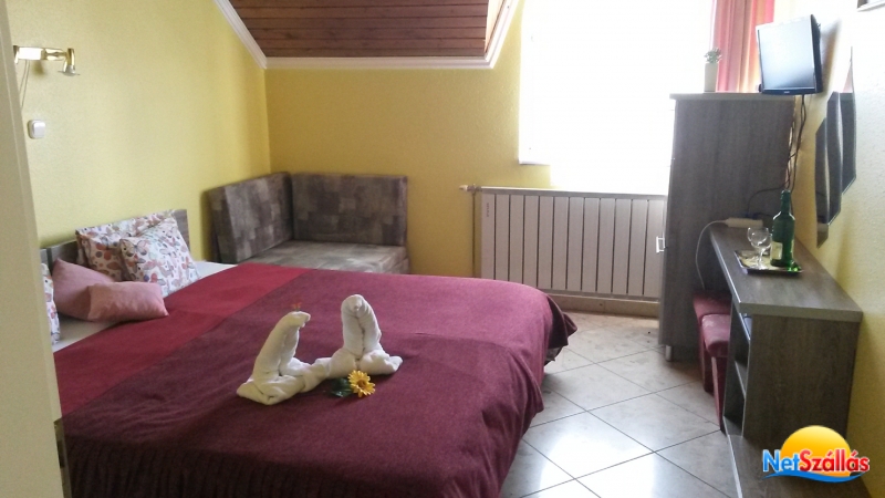 14 szobával rendelkezünk, a szobák teljes bútorzata modern stílusban készült . A vendégek egészségének megőrzése érdekében ágyaink MEMORI Gyógy matraccal vannak ellátva . Számunkra nemcsak az Ön egészsége, hanem kényelme is nagyon fontos, szállodánk szobáit hűtőszekrénnyel, Led televízióval ezen belül sat csatornákkal, légkondicionálóval, valamint saját fürdőszobával láttuk el, ahol törölköző, folyékony szappan, hajszárítóval van felszerelve. Panziónk udvarán valamint az épület előtt térítés ellenében, kamerával megfigyelt parkoló található, melyben vendégeink biztonságosan tarthatják járműveiket. Kerthelyiségünkben kikapcsolódhat, pihenhet a csendre és nyugalomra vágyó kedves vendég. Panziónk hangulatos, családias éttermében van lehetőség svédasztalos reggeli 8:00 - 10:00-ig menü ebéd 12:00 - 15:00-ig menü vacsora 18:00 - 19:30-ig 50 főig különböző rendezvények, családi, baráti összejövetelek élőzenés estek lebonyolítását vállaljuk éttermünkben. Érdeklődjön élőzenés karácsonyi szilveszteri, pótszilveszteri, farsangi, húsvéti csomagjainkról, valamint általános akcióinkról. Céges rendezvény, konferencia megtartására van mód. Wellness szolgáltatásaink Fin szauna fényterápiával hideg vizes merülő medencével 80-100 ? Infra szauna fényterápiával 35-67 ? Só kabin só generátorral és hangulat fénnyel ellátva Masszás medence fényterápiával 40 perces yade gerincnyújtó-méregtelenítő masszás Szomszédságunkban lévő gyógyfürdőben tudják igénybe venni a gyógyító vagy frissítő masszásokat egyéb rehabilitációs kezeléseket orvosi javaslat alapján TB által finanszírozott lehetőséggel.