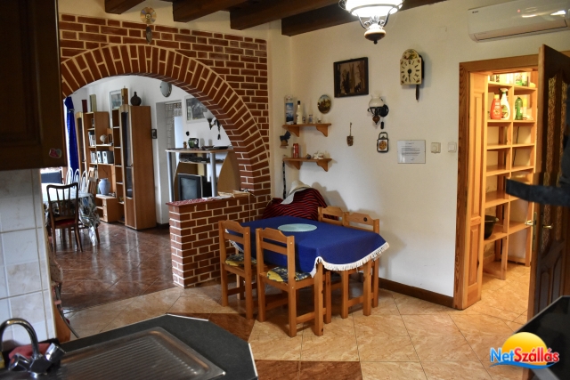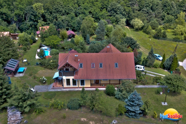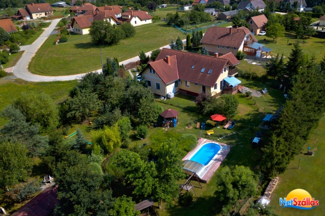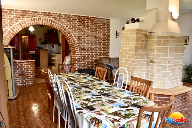 Légkondicionált 16 fős üdülőház teljesen felszerelt konyhával, nagy nappalival, napkollektorral melegített medence és zuhanyzó a 3100 nm kertben. Ideális hely baráti társaságok, több gyerekes családok együttlétére, évfordulók megünneplésére.