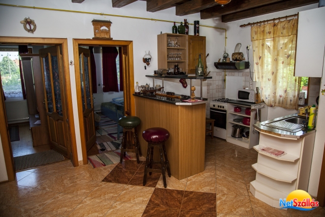 A konyha teljesen felszerelt: gáztűzhely, mosogató gép, 2 db hűtő, kávéfőző, mikró, vízforraló, edények és étkészlet 16 fő számára.