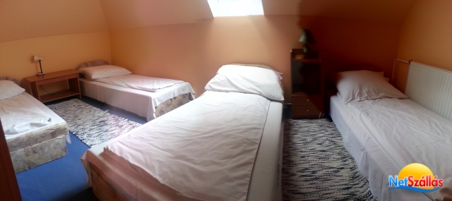 2000. márciusában átadott panziónkban 65 fő elszállásolására van lehetőség 3 ágyas zuhanyzós szobákban, illetve 4+2 ágyas zuhanyozós szobákban. Vendégeink kényelmét szolgálja az emeleten berendezett 4 személyes szauna, szolárium valamint társalgó. Televíziókészülék a szobák többségében és az emeleti társalgóban található. Ingyenes internet használati lehetőség van a panió vendégei részére.