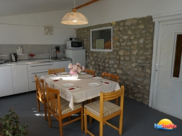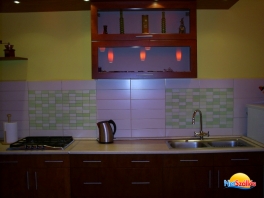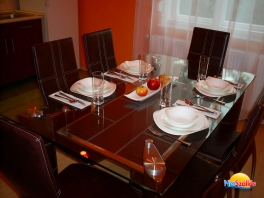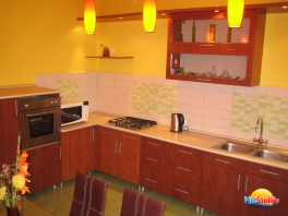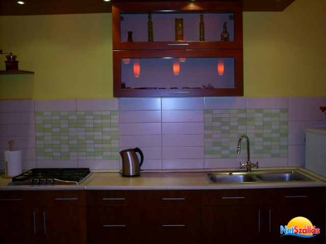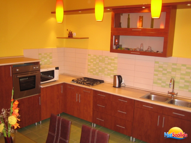 étkezőasztal,hűtő,mikro-hullámú sütő ,gáztűzhely,vízforraló és