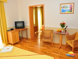 A legalább 25m2 alapterületű kétágyas szobáink kialakításánál, a komfortot, a nyugalom biztosítását szolgáló harmonikus színek mellett, minden szobában klíma, mini-bár, TV, telefon, hajszárító, zuhanyzós fürdőszoba és gyors, vezeték nélküli internetes csatlakozás (wifi) teszi teljessé, lehetőséget adva akár többhetes tartózkodásra is. Speciálisan berendezett szoba is áll mozgássérült vendégeink rendelkezésére.