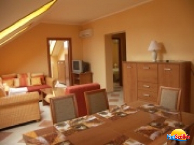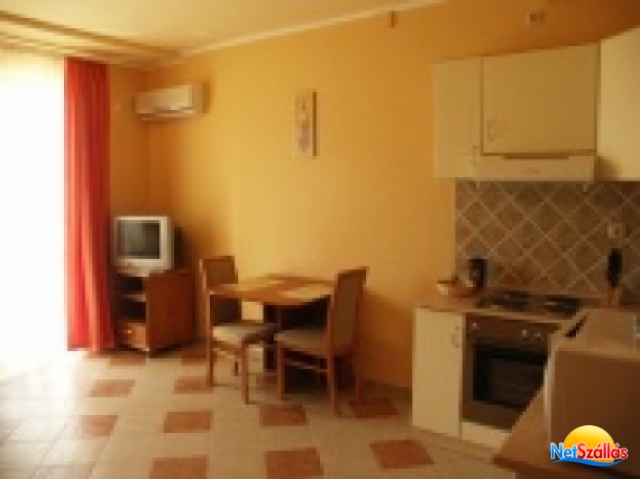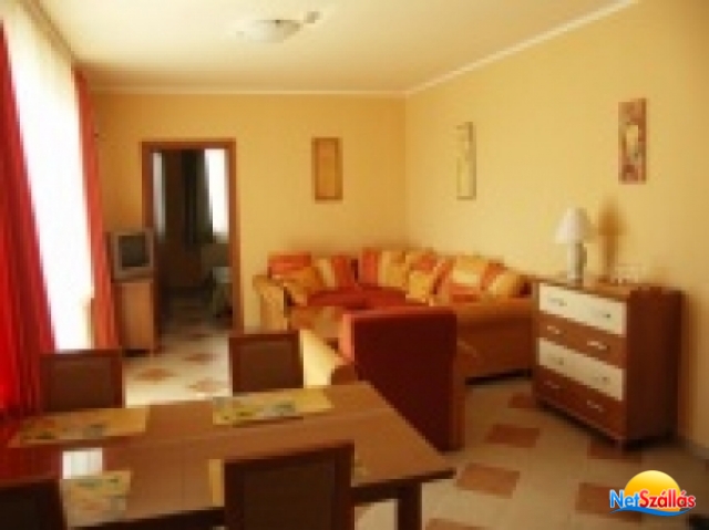 6 személyes apartman: konyha, étkez?-nappali, 2 db hálószoba, fürd?szoba WC-vel