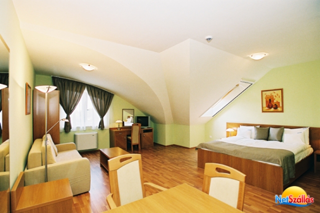 A 2008 nyarán megnyílt színvonalas, 4 csillagos szálloda valamennyi szobája és apartmanja légkondicionált, fürdőszobás, erkélyes (kivétel a tetőtéri, a földszinti valamint a standard apartmanok), színes televízióval, telefonnal, hajszárítóval, minibárral, fürdőköpennyel felszerelt.