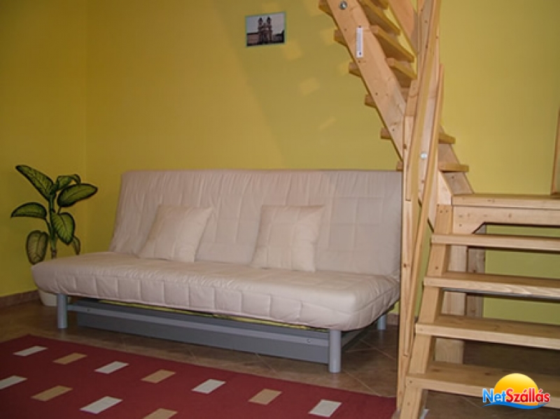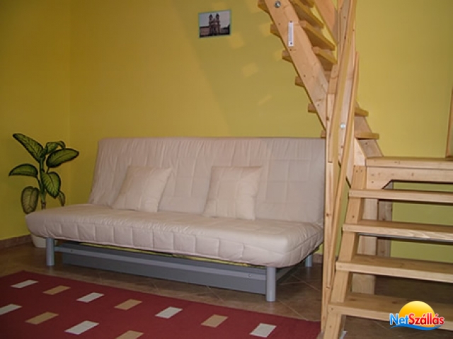 Apartmanjaink felszereltsége: Mindegyik apartman galériás kialakítású. Az alsó szinten van a nappali, melyben egy teljesen felszerelt minikonyha, étkező,tv,kétszemélyes ággyá alakítható kanapé található. A nappaliból nyílik a fürdőszoba és a wc.A galérián van kialakítva a hálórész.