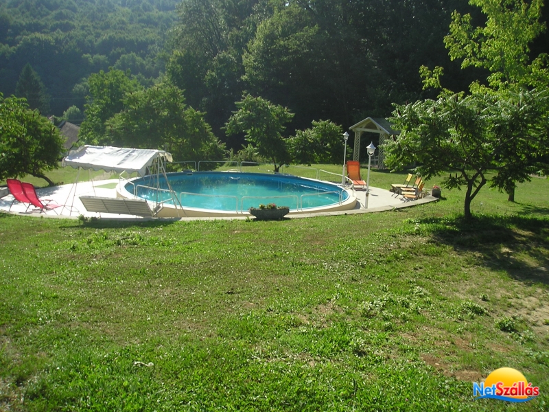 Panziónk a falu utolsó házaként az erdő mellett, nagy zárt kerttel, szabadtéri medencével, gyerekjátékokkal, kerékpárokkal, saját horgásztóval, borpincével várja vendégeit.
