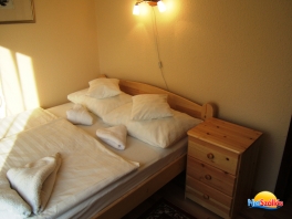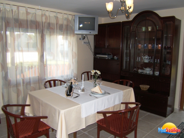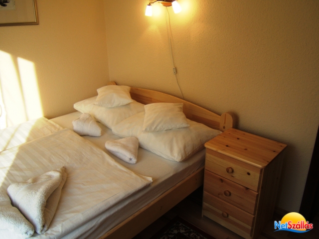 A földszinten 2 db kétágyas szoba található, melyhez egy teljesen felszerelt konyha, fürdőszoba és ebédlő tartozik (tv-vel, dvd/video lejátszóval, hifivel felszerelt).