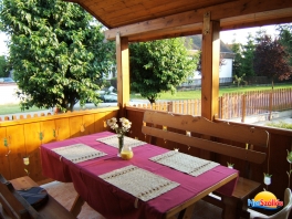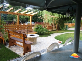 A kétszintes ház udvarán lehetőség van bográcsozásra, nyársalásra.