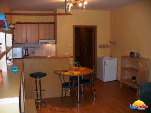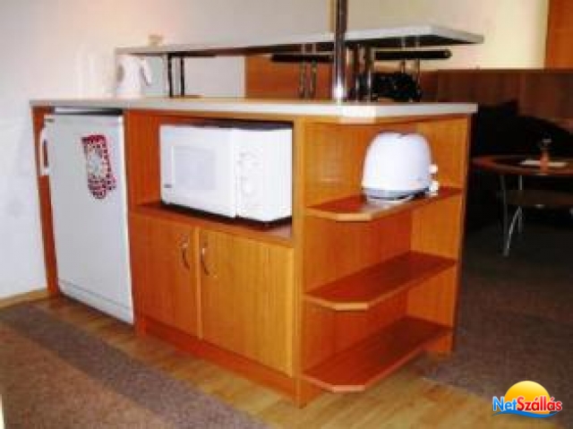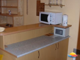 A Spiežovec nevű apartmanházban található lakosztályaink teljesen berendezettek és felszereltek. Az előszoba ruha- és cipőtárolóval, előszobából nyíló, WC-vel és tusolófülkével felszerelt fürdőszobával, a konyhai rész edénykészlettel, rezsóval, mikrohullámú sütővel, bárpultba beépített hűtőszekrénnyel, gyorsforraló kannával és kenyérpirítóval, a lakórész bárpulttal, 2 bárszékkel, kétszemélyes ággyá átalakítható sarok ülőgarnitúrával, duplaággyal, ruha- és éjjeliszekrényekkel, tükrös pipereasztallal, televízióval és CD-lejátszós rádiómagnóval rendelkezik. Mindkét lakosztályunk erkélyes, ezek a lakórészből nyílnak.