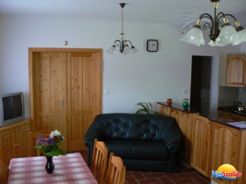 A ház nagyon igényesen felújított összkomfortos parasztház a maximum 4 napraforgóval ellátott. Mivel egész évben nyitva vagyunk, így adott esetben a meleget padló fűtéssel, búbos, valamint cserépkályhával,illetve központi fűtéssel biztosítjuk. Három szoba található két-két fő részére fekhellyel+ még 2 személyre pótágyazható, valamint szorult esetben a nappaliban van egy kihúzható kanapé. A konyha teljesen fel van szerelve (edények, tányérok, kávéfőző, kenyérpirító, mosogatógép, villanytűzhely stb...). A házhoz tartozik egy nagy udvar gyümölcsössel, egy kemence, illetve nyári pihenő rész. A vendégházban teljes ellátást nem tudunk biztosítani, kérésre,vagy igény esetén tájjellegű,vagy egyéb ételeket tudunk biztosítani,amit a közelben készítenek el, igény esetén házhoz hozzák,vagy pár kilométerre,ahol készítik,ott is elfogyasztható. 5 km körzetben éttermek is találhatóak,valamint a szállástól kb 30 méterre egy vegyes bolt is.