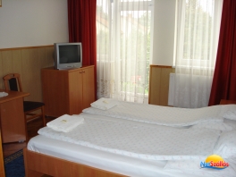 A vendégház 10 fő befogadására alkalmas, a 2 és 3 ágyas fürdőszobás szobák színes TV-vel felszereltek.