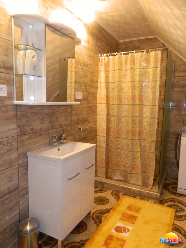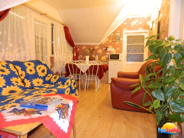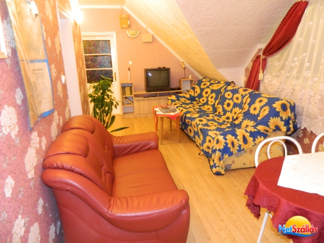 1 szoba, mely 1 kétszemélyes , 2 egyszemélyes ágy, valamint bővíthető 1 felnőtt - 1 gyermek fotelággyal. Külön zuhanyzós fürdőszoba, társalgó-étkező rész külön helységben és terasz tartozik hozzá.