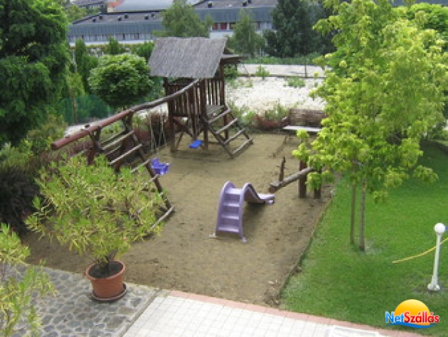 A teraszról páratlan kilátás nyílik Eger történelmi barokk belvárosára, mellette a kicsik kedvence a játszótér.