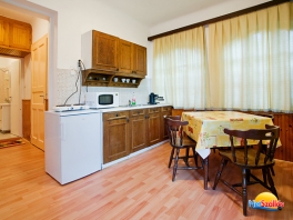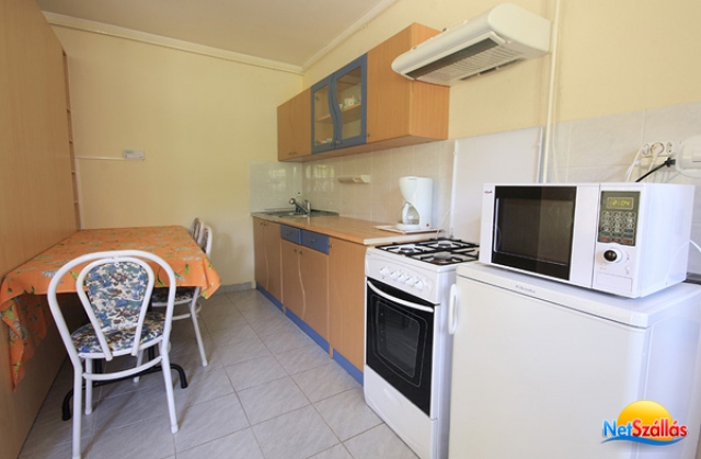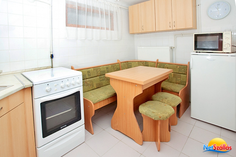 Minden apartmanban külön étkező-konyha van. A konyhák teljes felszereltségek (gáztűzhely, hűtőszekrény, mikrósütő, kávéfőző, mosogató, edények és evőeszközök).