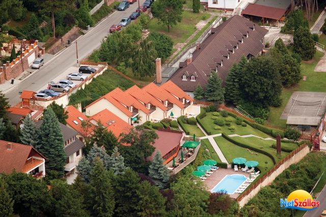 Panziónk Balatonalmádi üdülőövezetében található 3 km-re a belvárostól,viszont nagyon közel a vízparthoz (kb.70 m-re a Balatontól).Gyönyörű panorámával a tóra,mivel domboldalban helyezkednek el az épületek.8 db szobánk mindegyike franciaágyas,saját zuhanyzós fürdőszobával,Tv van a szobákban.Terasszal vagy balkonnal rendelkeznek,attól függően,hogy emeleti vagy földszinti a szoba.A kertben kültéri fűtött vízű medence (max.októberig üzemel) várja a vendégeket.Saját vízparti strand és napozóstég tartozik még egységünkhöz.