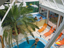 fűtött, feszített víztükrű, fedett medence, pezsgőfürdő, finn szauna, infraszauna, gőzkabin, merülő medence, kozmetika, masszázs, pedikűr, manikűr, szolárium - fitness gépek