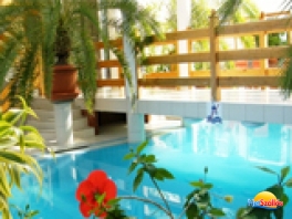 Vendégeink a hotel japánkertjében több száz virág között hallgathatják a szökűkút csobogását, s gyönyörködhetnek az aranyhalakban. Napernyők alatt elnyújtózva kortyolgathatják koktéljaikat, vagy a frissen csapolt sört.