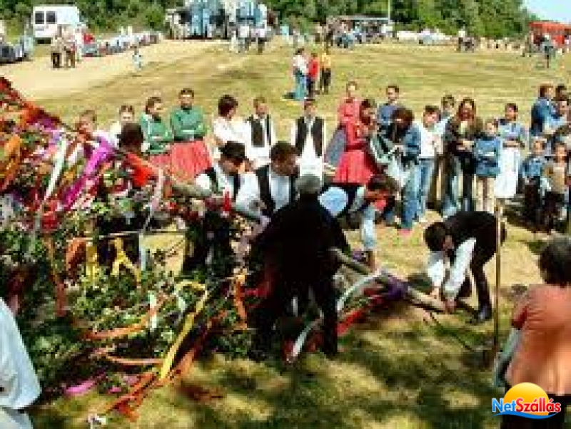 Májusfa állítás, zenés traktoros ébresztés, egész napos vigadalom.