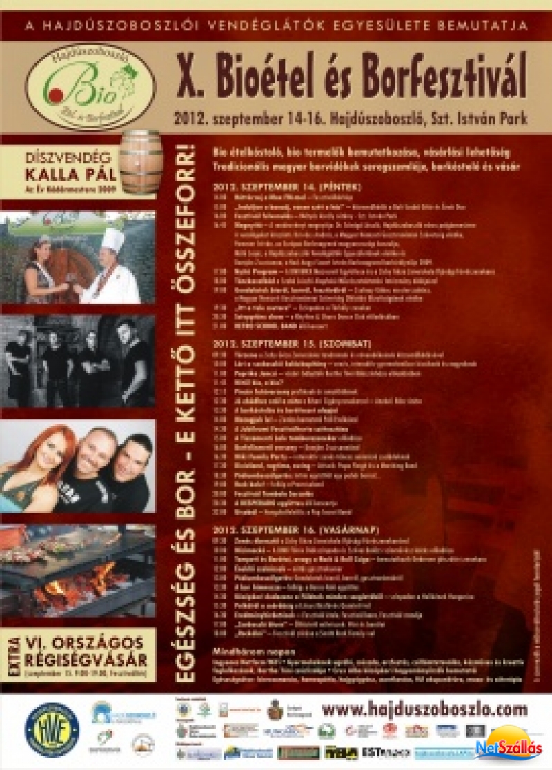 Kóstolta már a hajdúság legfinomabb bioételeit? Hát most itt a lehetőség, legyen vendégünk Hajdúszoboszlón 2012. szeptember 14.-16. között a Bioétel és Borfesztiválon? Az őszi napsütés első sugarai, a gyógyvíz illata, simogató hullámai és a fesztiváli programok és gasztronómiai kínálat együttesen biztosítják az egyedi kikapcsolódást és teszik egyedivé a felüdülést! Az idei évben 10. alkalommal rendezik meg a bio ételeket és kiváló magyar borokat népszerűsítő gasztrokulturális rendezvényt szeptember 3. hétvégéjén. A fesztivál programjai között mindenki megtalálhatja majd a kedvére való szórakozási, kikapcsolódási lehetőséget. Jöjjön el Ön is családjával, baráti társasággal Hajdúszoboszlóra a Bioétel és Borfesztivál idején.