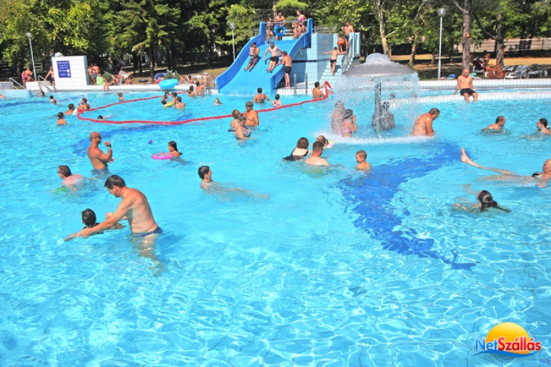 A szórakozást, felfrissülést hullámmedence, élményelemekkel gazdagított felnőtt- és gyermekmedencék szolgálják. Az egész évben nyitva tartó fedett fürdőben 3 különböző hőfokú gyógymedence, uszoda, pezsgőfürdő, szauna és gyógyászati részleg áll a vendégek rendelkezésére. A kalcium - magnézium - hidrogén-karbonátos szabad szénsavat tartalmazó, magas szulfidkén tartalmú hévíz több, mint 60 éve áll a gyógyulás szolgálatában; 1968 óta pedig hivatalosan is gyógyvíz minősítésű, amely alkalmas reumás megbetegedések, ízületi kopások, sérülések, ortopédiai műtétek gyógyítására, kezelésére. Javítja az anyagcserét, fokozza a szervezet ellenálló képességét.